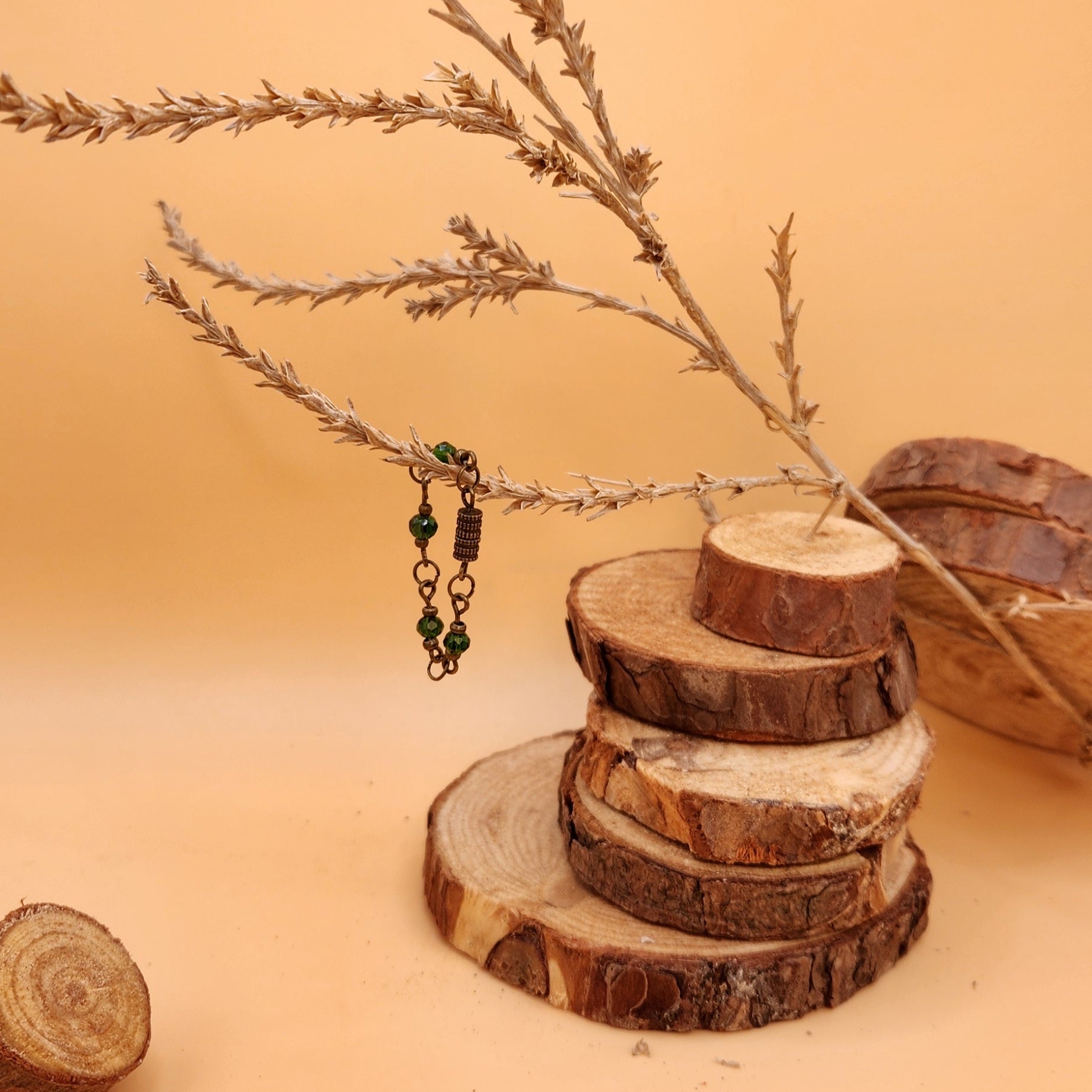 Bronze Colored Metals with Faceted Emerald Glass. 2" Necklace Extender for ArcherLass1 and ArcherLass2 Necklaces which extends the overall necklace length to 18" "Princess" length. This piece is inspired by the numerous Celtic and Gaelic folklore accounts of female archers and warriors in early medieval history. Created by Artist: Leslyn