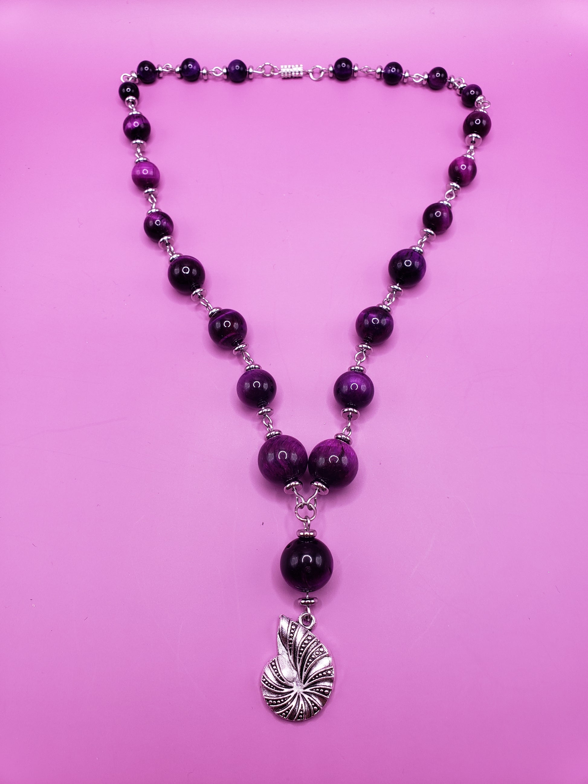 SeaWitch2 Purple and Black Tiger's Eye w/ Ammonite Shell 16" Necklace